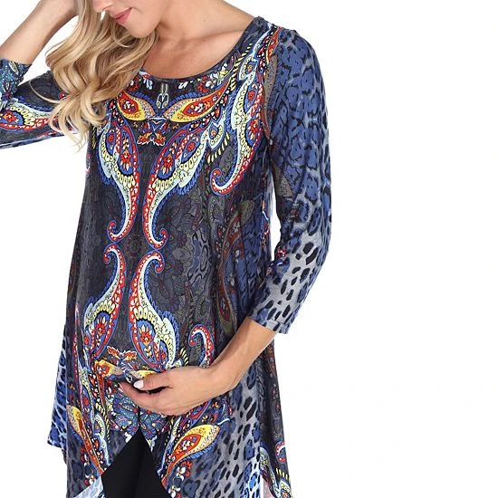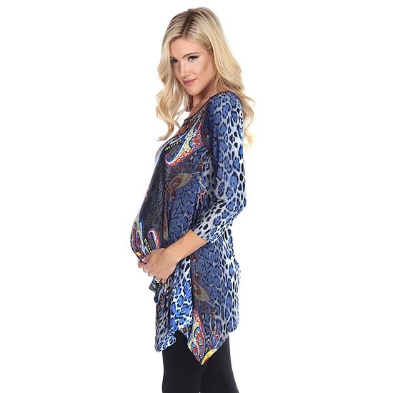 Keep your style fresh throughout your pregnancy with this multi-print maternity tunic top from White Mark.