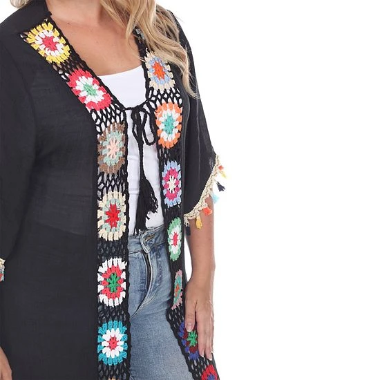 Whether you wear it as a swim cover-up or to top off a casual outfit, you’ll love the retro-style of this women’s White Mark crochet-trim long cover-up.