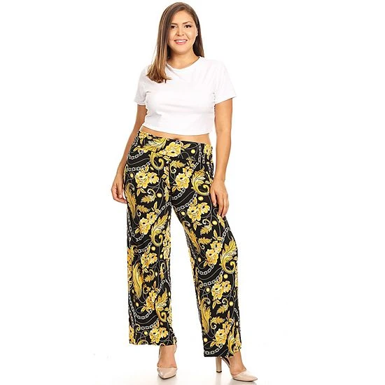 A fun print and bold color give these White Mark plazzo pants eye-catching style.