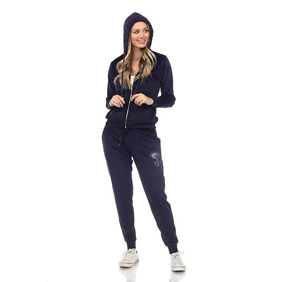 The rhinestone accents and velour construction gives this women’s White Mark track suit a casual look you’ll love.